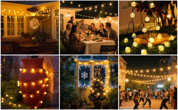 Oslavte své výjimečné události – svatby, pikniky nebo vánoční oslavy s trvalou elegancí. Řetězová světla a solární panely SOLSTICE jsou vodotěsné s krytím IP44 a lze je používat v interiéru i exteriéru bez obav z poškození vlivem počasí.