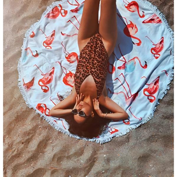 Kruhový ručník je určen k relaxaci na pláži nebo u bazénu, lze jej však nosit i uvázaný kolem těla jako oděv.