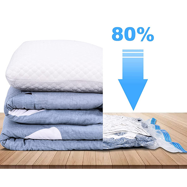 Dochází vám úložný prostor? Ušetřete až 80 % místa s našimi vakuovými úložnými pytli! Jednoduše zabalte – uzavřete – a vysajte vzduch, abyste zmenšili objemné předměty jako oblečení, deky a ložní prádlo. Více místa, méně nepořádku!
