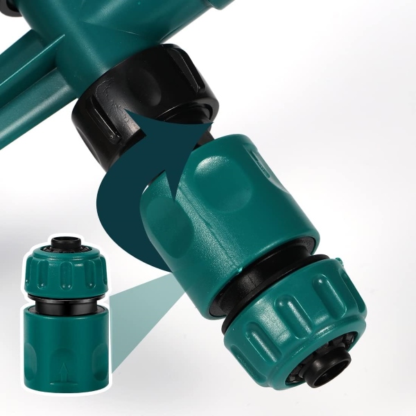 S dvojitými tryskami na vodní hadici ROTOSPRITZ můžete bez námahy připojit více zavlažovačů a pokrýt tak větší plochy. Jednoduše připojte dvě nebo více jednotek ROTOSPRITZ k sobě pro oboustranné zavlažování, které zajistí, že celá vaše zahrada dostane ideální množství vody. Díky tomuto bezproblémovému propojení je ideální pro rozsáhlé trávníky a rozlehlé zahradní záhony.