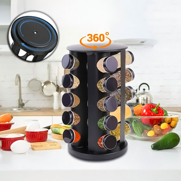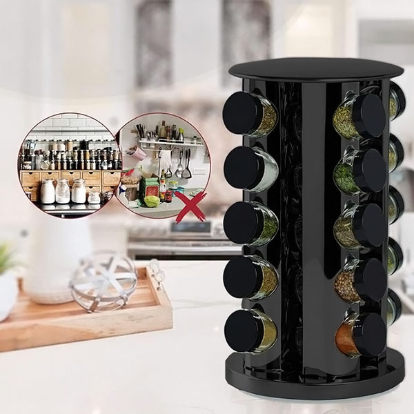Tento otočný stojan na kořenky vnese do každé kuchyňské sestavy funkčnost i styl.