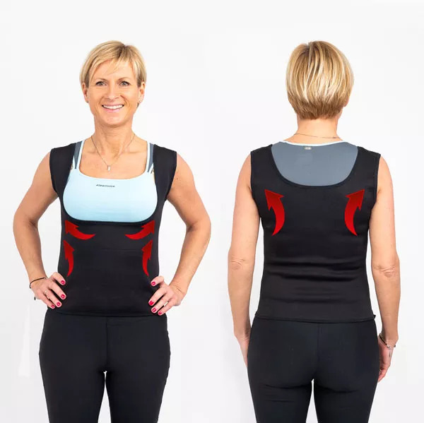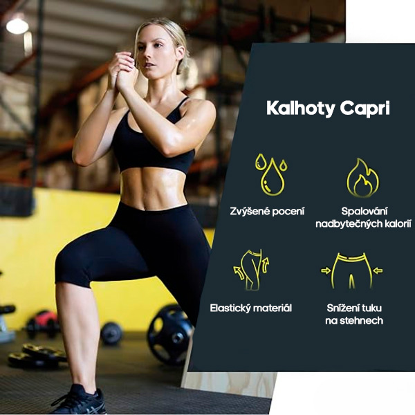 Dosáhněte štíhlejší siluety s termoformující vestou a kalhotami capri. Efektivně zpevňuje břicho a skrývá tukové záhyby pro dokonalou postavu.