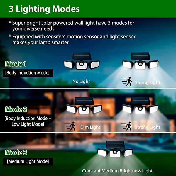 3 inteligentní režimy osvětlení – Vyberte si úroveň jasu, kterou potřebujete!