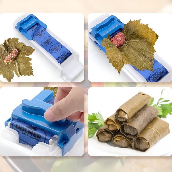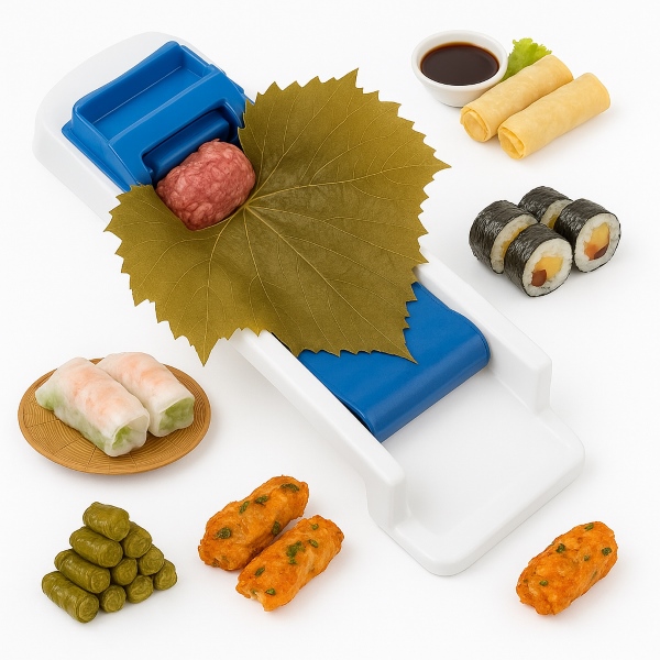 Strojek FOODROLL není určen pouze na vinné listy! Je ideální pro balení dolmy, plněného zelí, sushi, masových závitků nebo zeleninových závitků, jako je falafel a jarní závitky. Snadno z něj připravíte závitky velikosti svačiny pro děti, na oslavy nebo pikniky – hodí se na všechny druhy náplní.