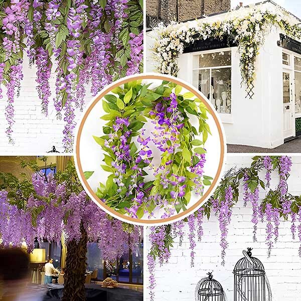 Už vás nebaví udržovat skutečné květiny, které vadnou a blednou? WISBLOOM je imitace květů vistárie s listy břečťanu, která vnese do vašeho prostoru nádech přírodní krásy bez zbytečných starostí. Tyto živé, realistické závěsné květiny zůstávají rok co rok svěží a barevné, což zajistí, že vaše zahrada nebo dům budou vždy vypadat úžasně.